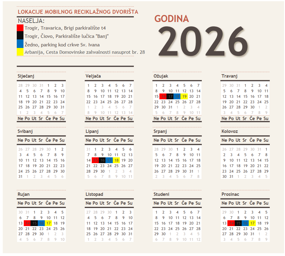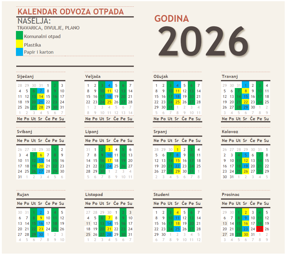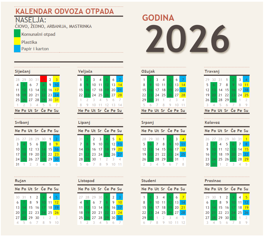 Spremnici za odvojeno prikupljanje otpadnog papira, kartona, plastike i stakla nalaze se na slijedećim lokacijama: